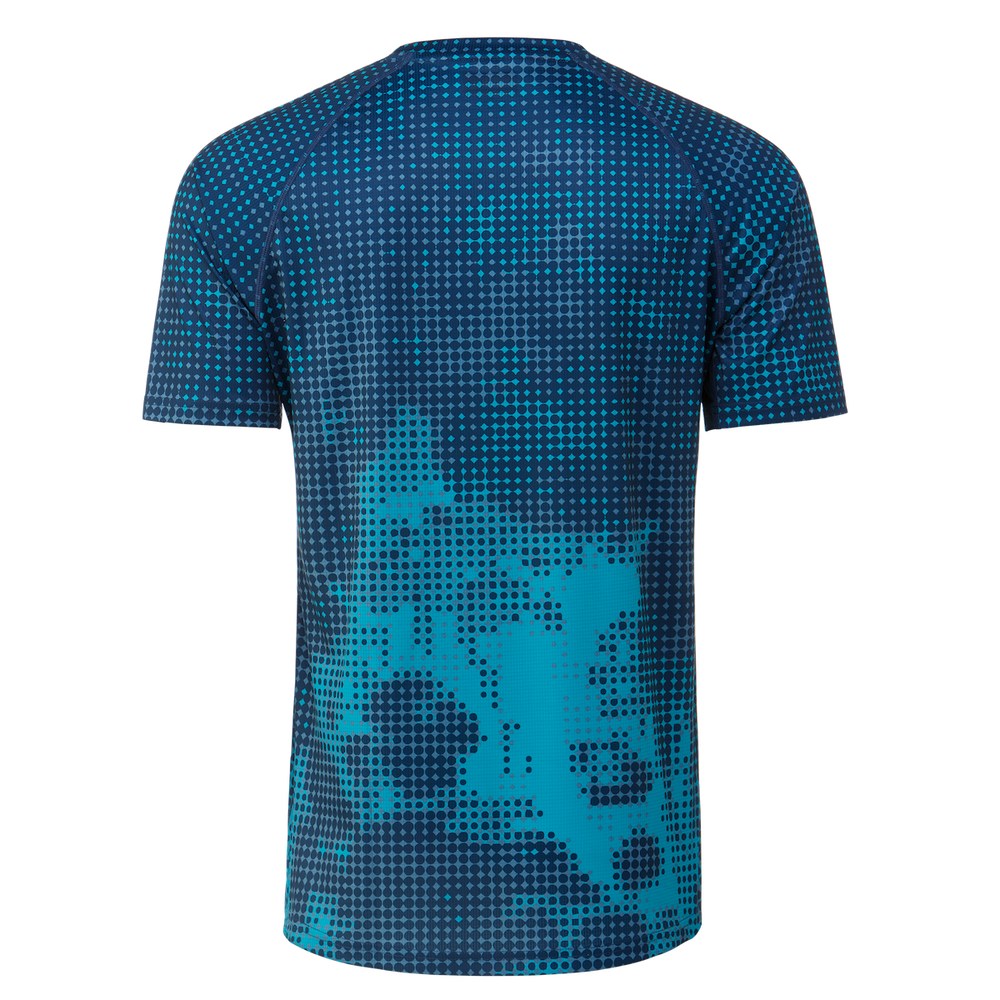 Our graphic jersey in the Range collection, improved for '23 with new knit fabric that's lighter and more breathable for enhanced warm-weather performance. Microgrid texture on fabric helps prevent the "saran wrap" sticky feel when wet. Raglan sleeve patterning provides excellent range of motion. Microfiber sunglass wipe.